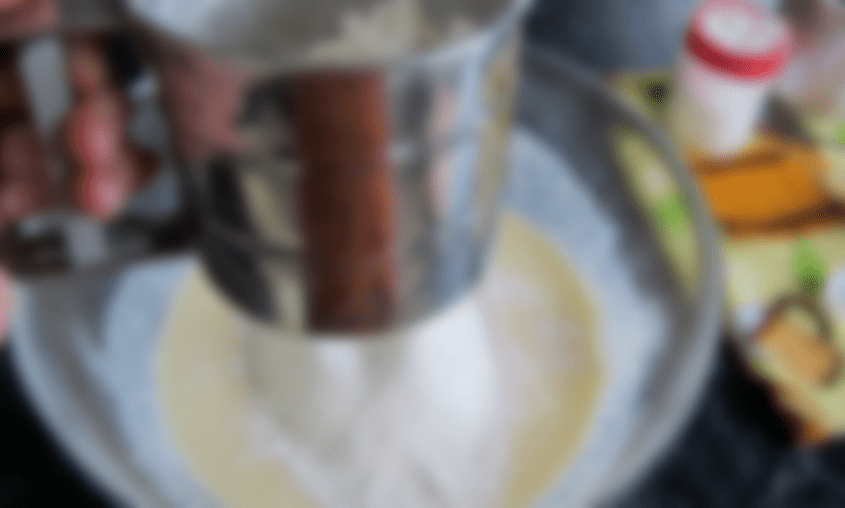 - На скорую руку тесто для татарских лепешек готовится без яиц. Вам нужно только смешать молоко с просеянной мукой и добавить щепотку мелкокристаллической поваренной соли.