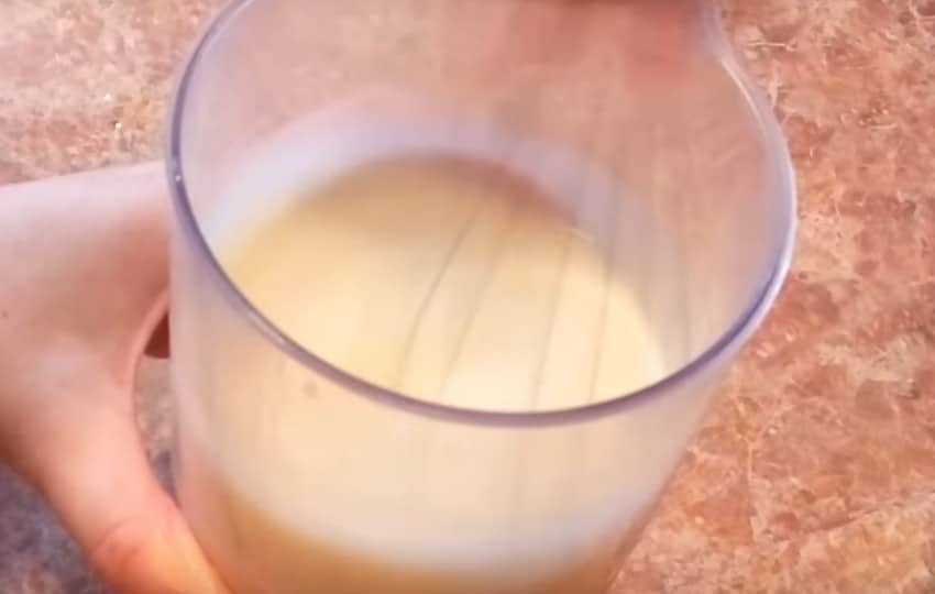 Шаг 5. К взбитым яйцам налить молоко с водой и все взбить в однородную массу.