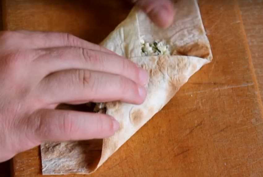 Вот таким образом, как на фото, укутываем начинку лавашем: