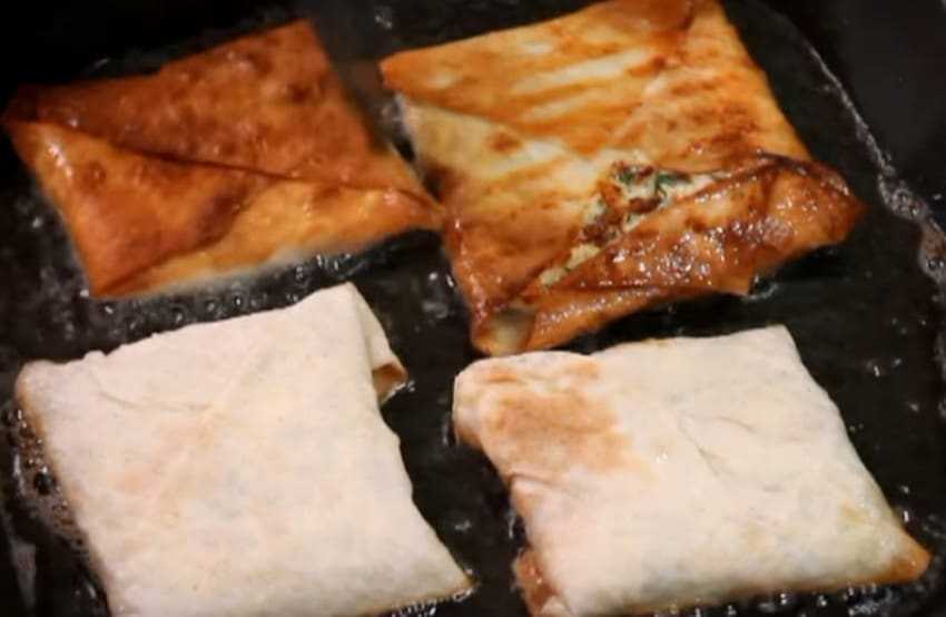 Конвертики с сыром и колбасой жаренные на сковороде (видео)