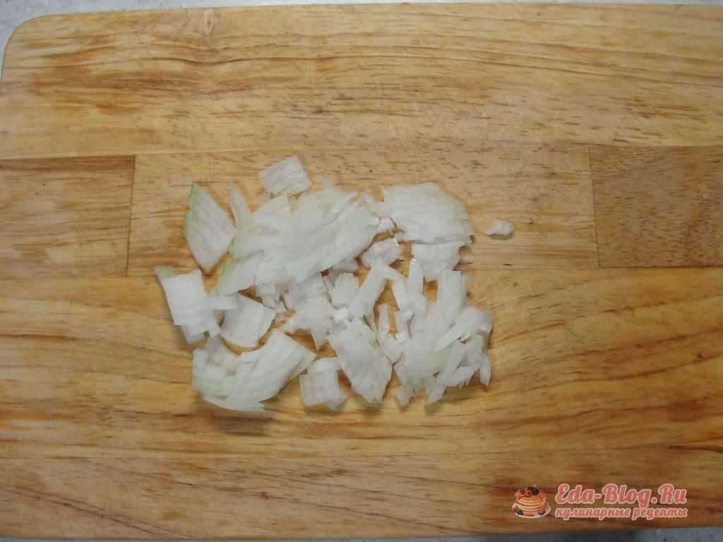 Очищенную репчатую луковицу нарезаем как можно мельче,