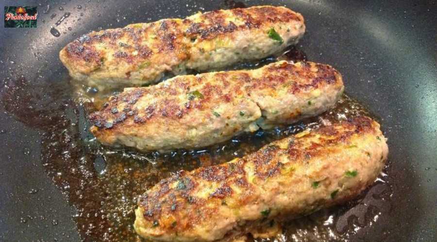 Разогрейте масло на сковороде и отправьте кебаб на обжарку как обычные котлеты. Куриные кебаб готовятся очень быстро, переворачивайте их чтобы они не пригорели.