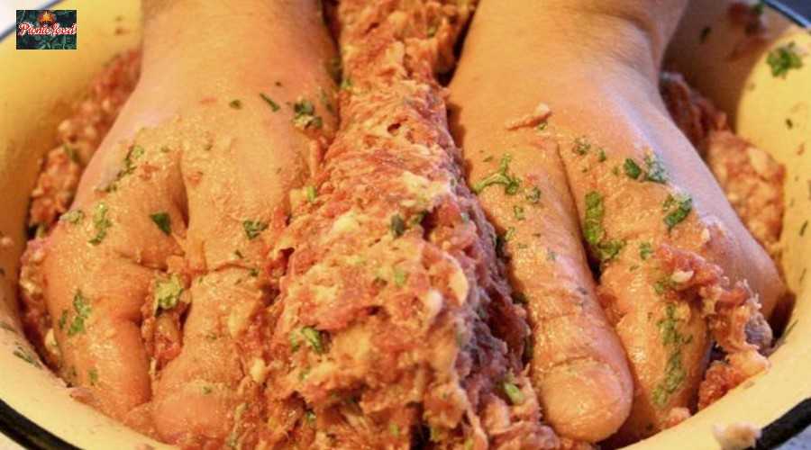 - Перед тем как пожарить люля кебаб на сковороде, неДостать фарш из свинины из холодильника. Сформировать из него люля-кебабы длиной не больше 12 см.