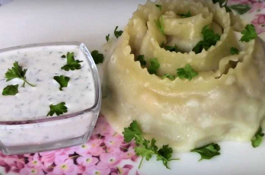- Подавайте манты со сметаной или соусом на ваш вкус.