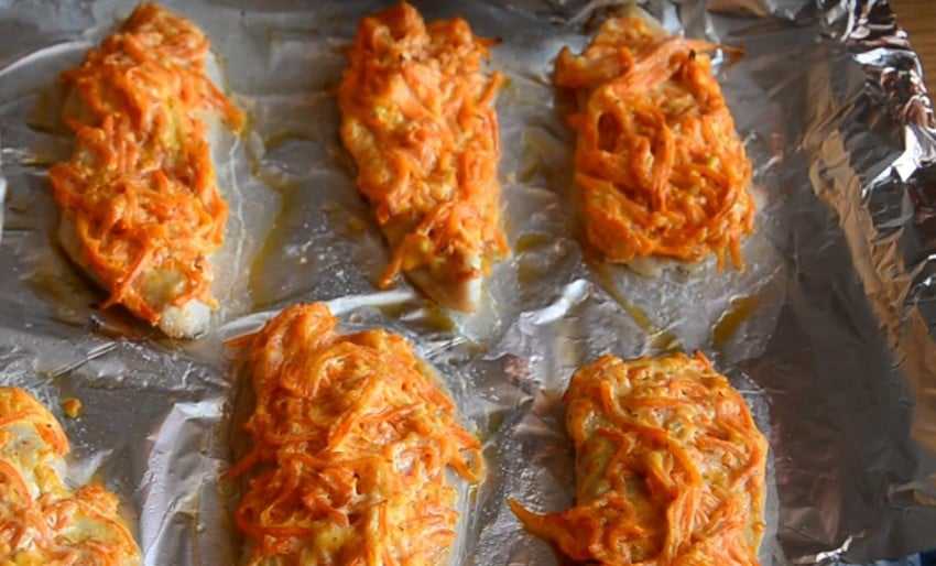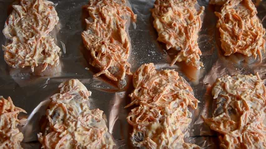 По этому рецепту курица получается очень нежной и тает во рту. Хорошее блюдо «под шубой» придётся по вкусу всем любителям корейской моркови.