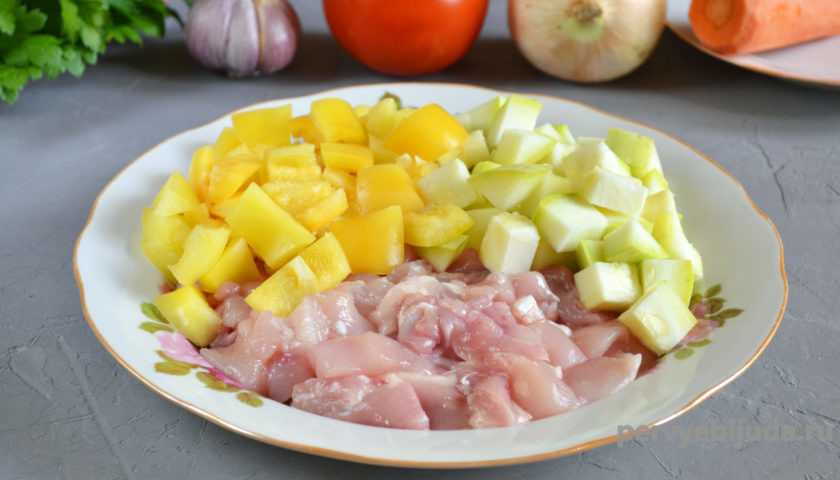 Овощное рагу с курицей, кабачками, капустой и картошкой в мультиварке