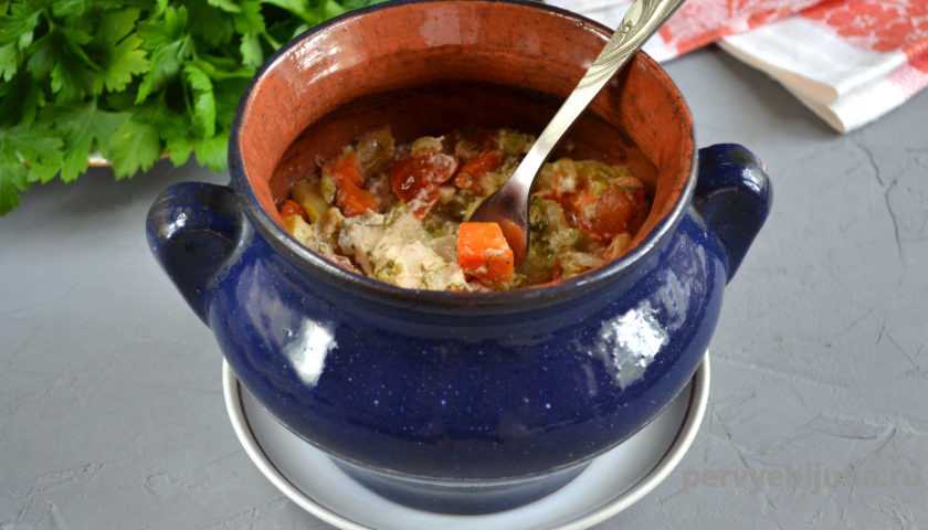 В горшочках любое блюдо всегда получается очень вкусно. Ниже приведен самый удачный домашний рецепт, в котором даже не придется ничего предварительно обжаривать.