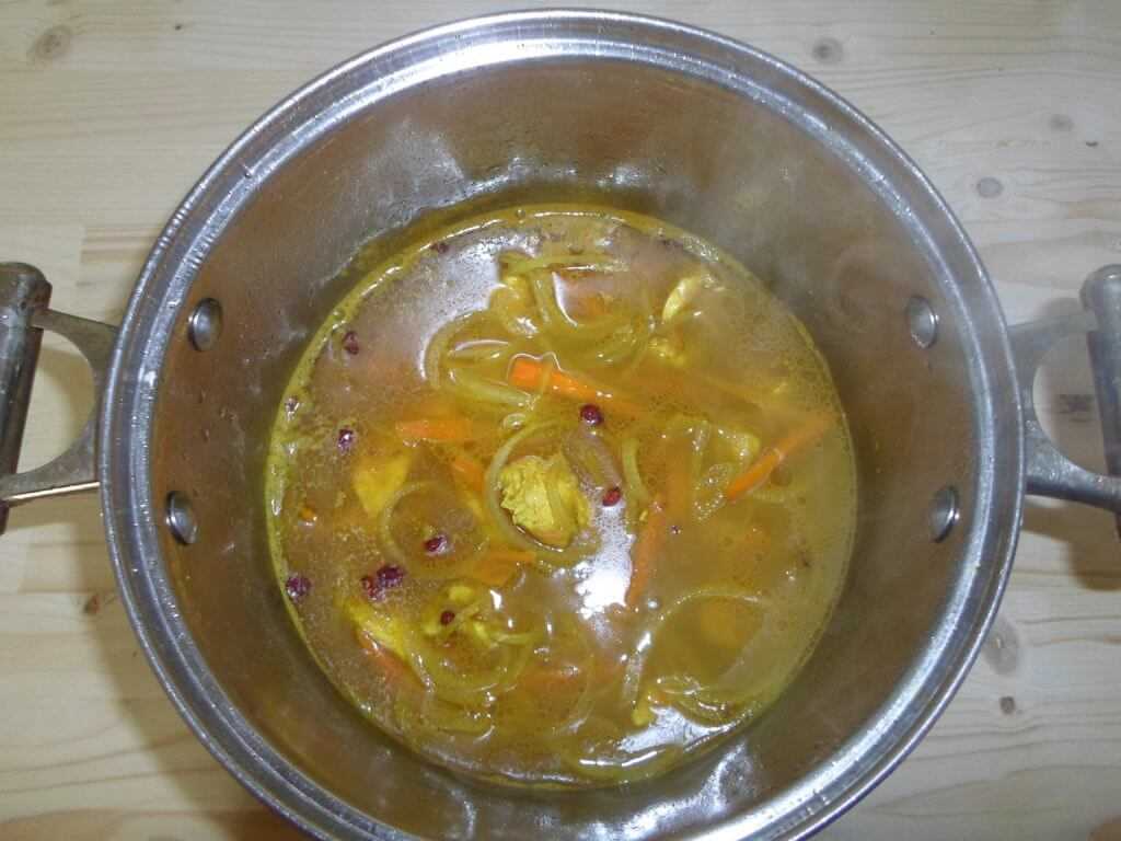 - Специи — по 0,5 ч. л. (чёрный и душистый перец, куркума, зира, барбарис)
