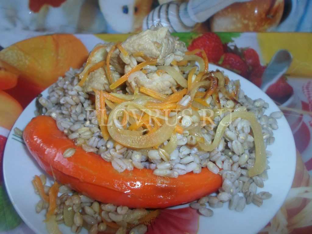 Готовое блюдо по классическому рецепту из перловки и курицы получается рассыпчатым и ароматным. Плов не должен склеиваться и быть как каша.