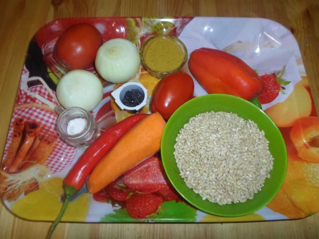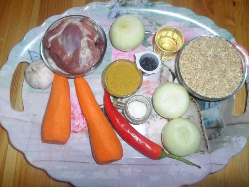Подготовьте все необходимые продукты: замоченную крупу, пряности и специи, набор овощей по вкусу.