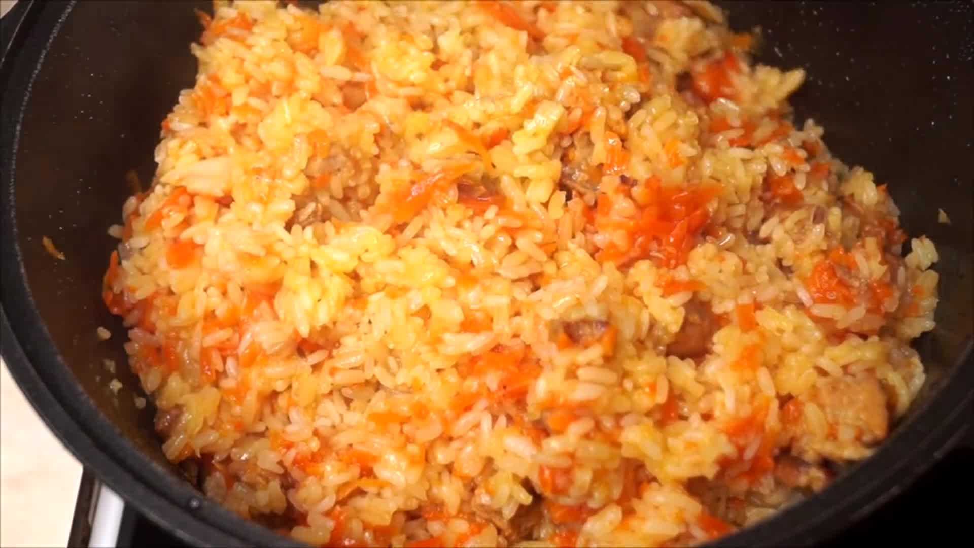 - Рис готов, когда вода выкипела, рис проварен, а на дне казана или сковороды булькает масло. Огонь выключаем и немного ждем, чтобы рис настоялся.