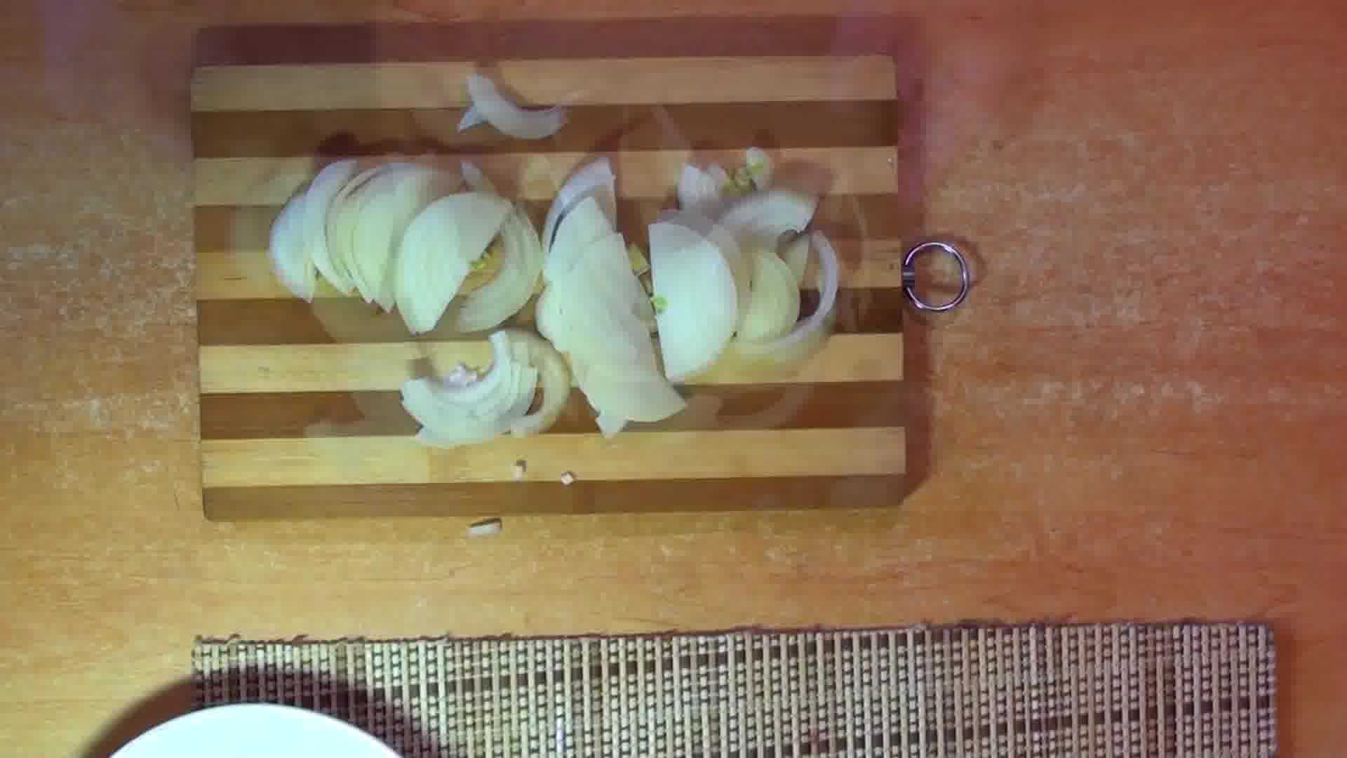 Очистите луковицу и нарежьте ее крупными кубиками.