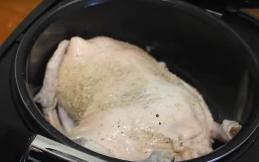 Перед тем как начать готовить утку в мультиварке, ее нужно измельчить. Натрите каждый кусок смесью соли и перца и оставьте мариноваться на час. Затем смажьте ложку маслом, положите в нее мясо и сверху нарезанные овощи.