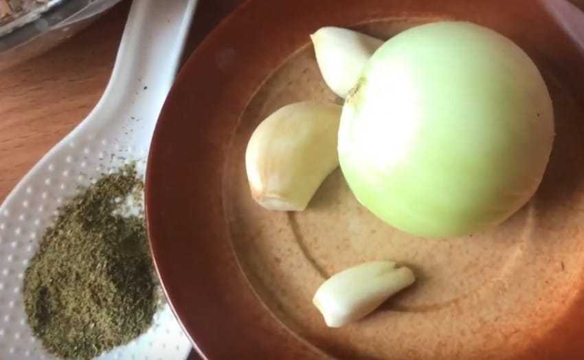 3. Измельчите лук, чеснок, смешайте их с майонезом и специями.