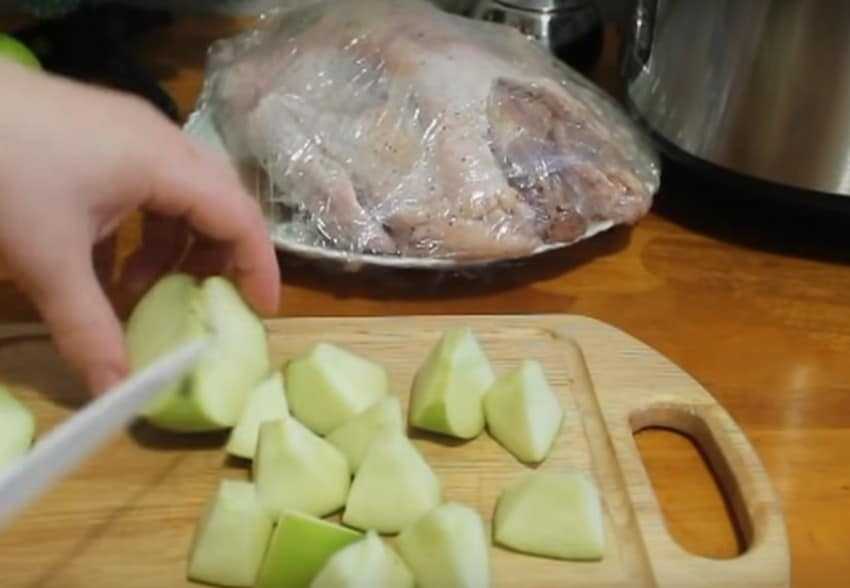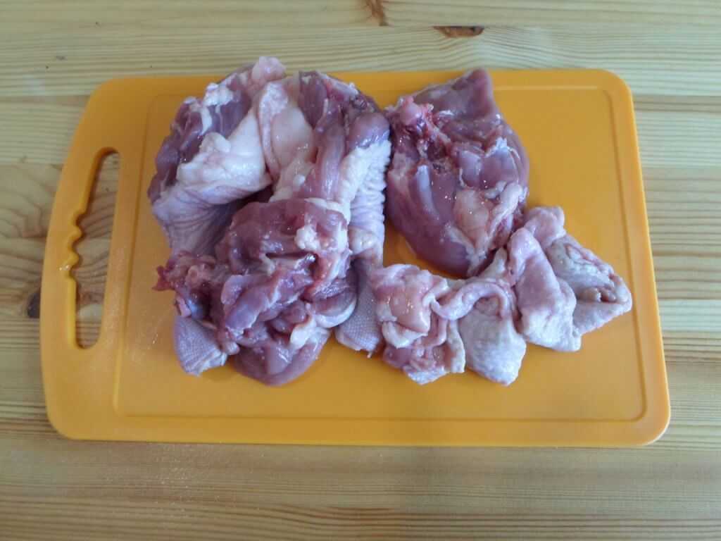 - Разрежьте утку на кусочки среднего размера – такие, чтобы их не пришлось после в тарелке тоже активно разрезать.