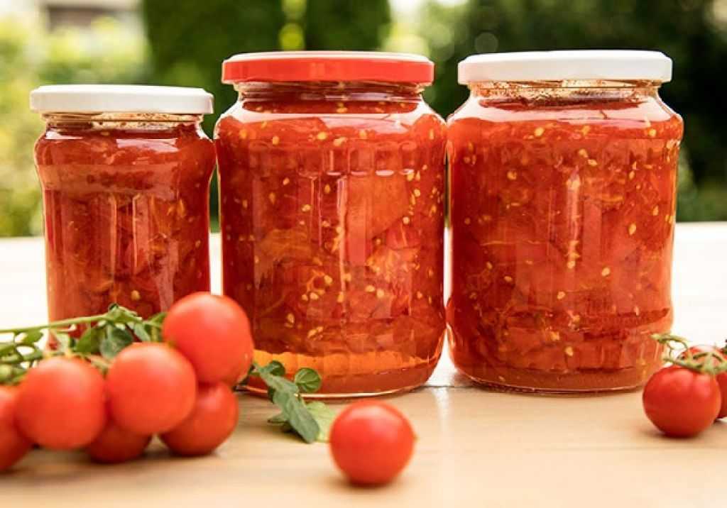 Этот рецепт хорош тем, что по нему можно готовить томатные заготовки для приготовления еды. Здесь содержимое получается не в виде целых плодов, или долек, а в виде кусочков произвольной формы.