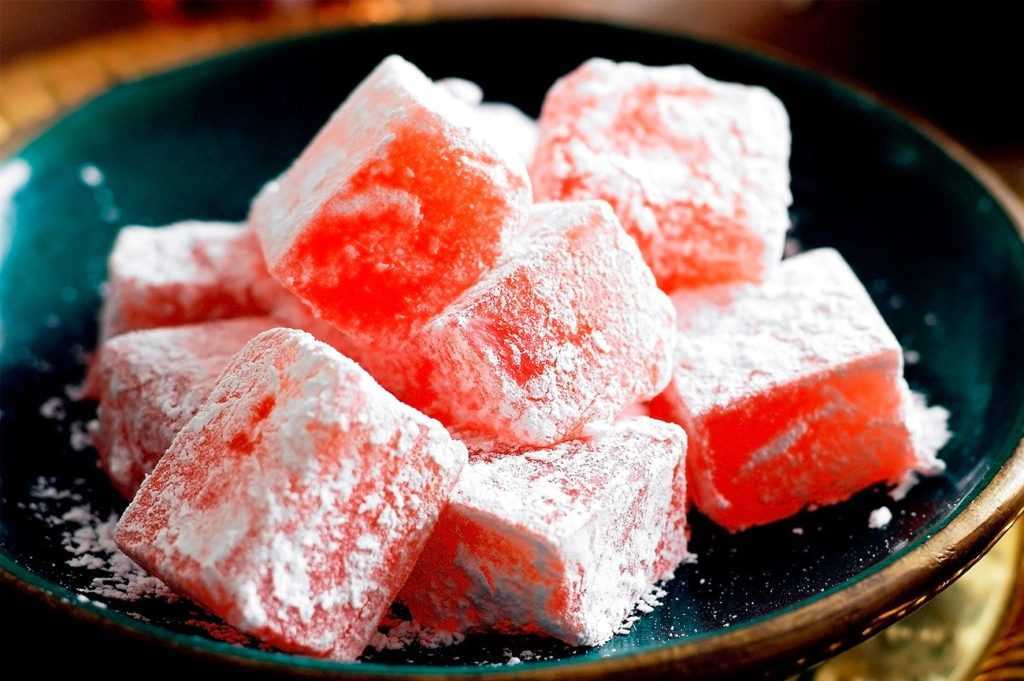 Сладость приготовили из розовой воды, сахара и крахмала. Она получила трепетное название «кусочки удовольствия».