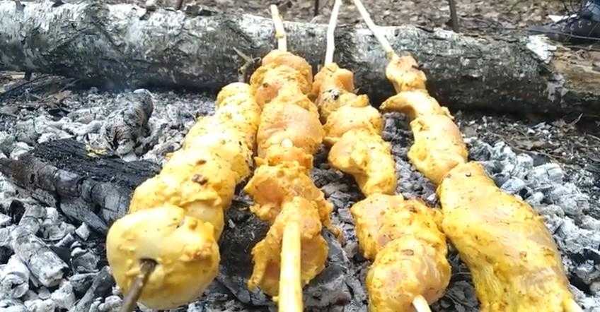 Шашлык из курицы и шампиньонов на мангале