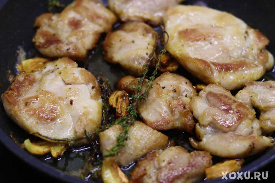 Обжариваем курицу на хорошо разогретой сковороде до готовности минут 5-7 чтобы не пересохла