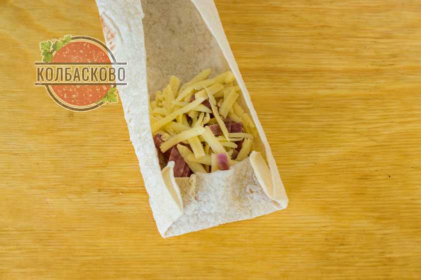 Рецепт 3: лаваш с колбасой, сыром и помидорами на сковороде