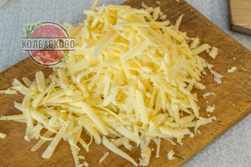 Твердый сыр выбирайте по своему усмотрению, главное, чтоб он хорошо плавился. Кусок сыра натираем на крупной терке.