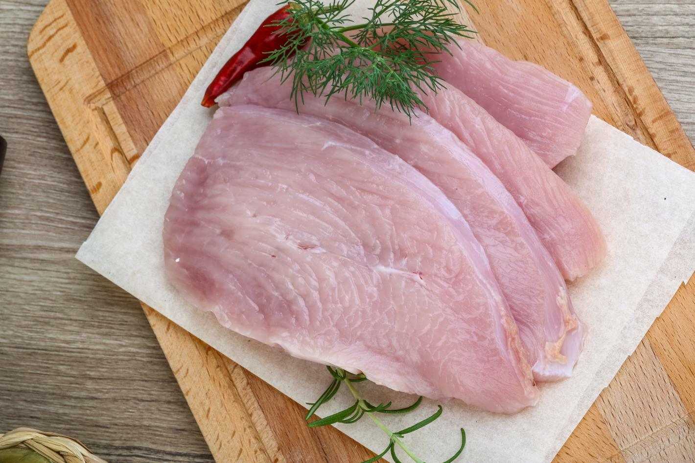 Филе — самая дорогая и нежная часть индейки. Идеально для маленьких стейков толщиной 2-3 см или вырезки филе целиком.