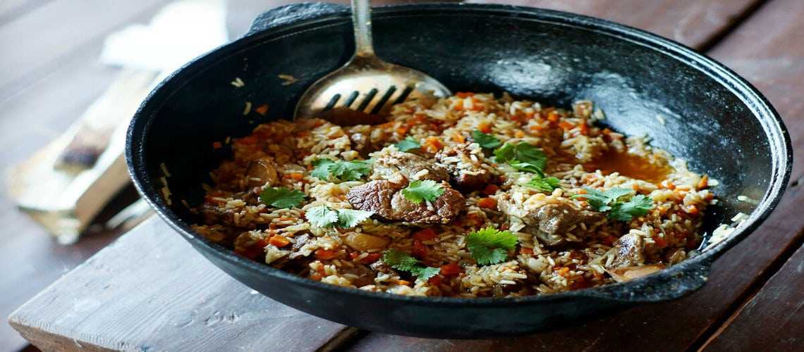 Начнём с настоящего узбекского плова, который можно приготовить дома на плите.
