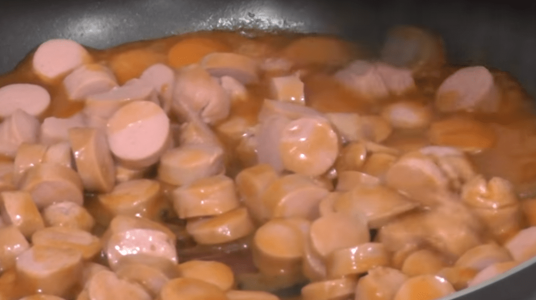 - Сосиски или колбаса — 300 г