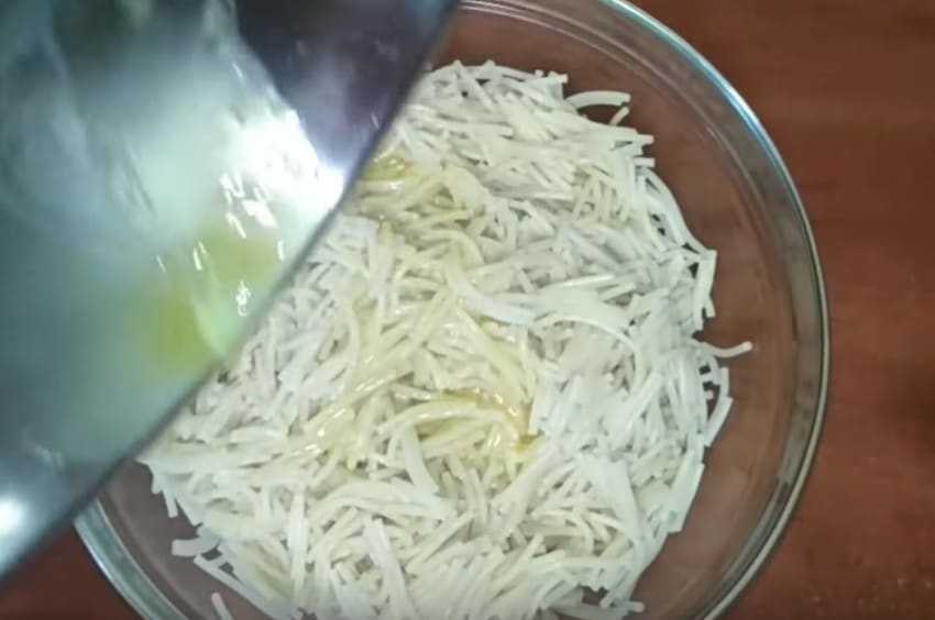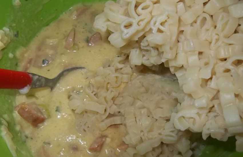 Полученную массу, заливаем в вермишель, тщательно перемешать.